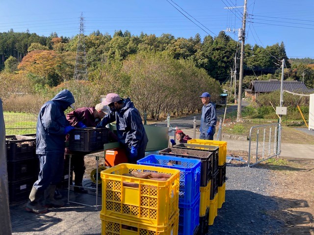 洗ったお芋は乾かして大きさやキズの有無を確認します